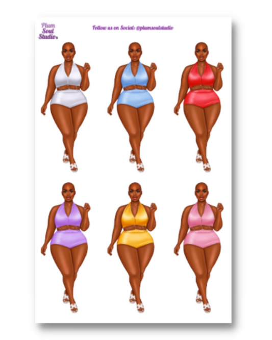 Belinda Bathing Suite Purple and Pink Bald Sticker Sheet